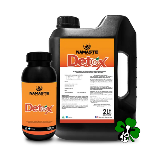 - Namaste Détox ayuda a limpiar el suelo efectivamente utilizando menos agua. Su fórmula basada en Ácidos Orgánicos cuenta con gran poder abrasivo. También es excelente para usar en casos de sobre fertilización, durante etapas previas de crecimiento de la planta, para evitar trasplantes que pueden estresarla.